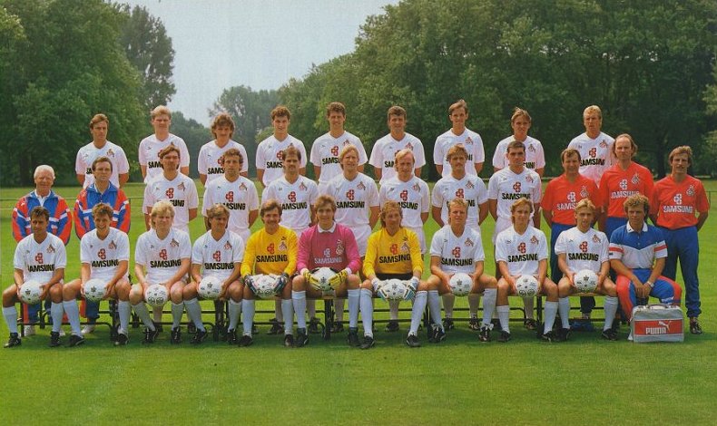 | Unten v. l. n. r.: | Littbarski, Povlsen, Görtz, Götz, Diergardt, Illgner, Kargus, Higl, Heldt, Häßler, Masseur Schäfer. |