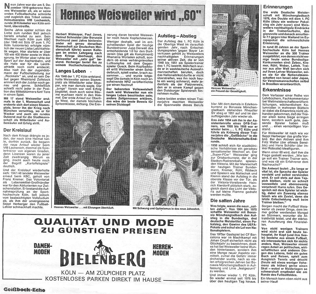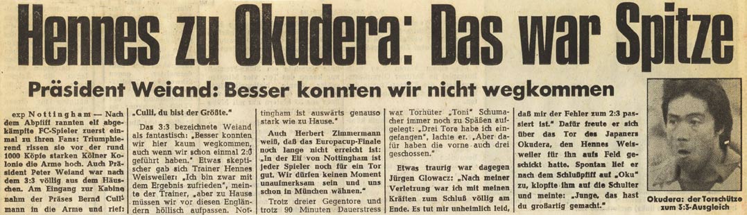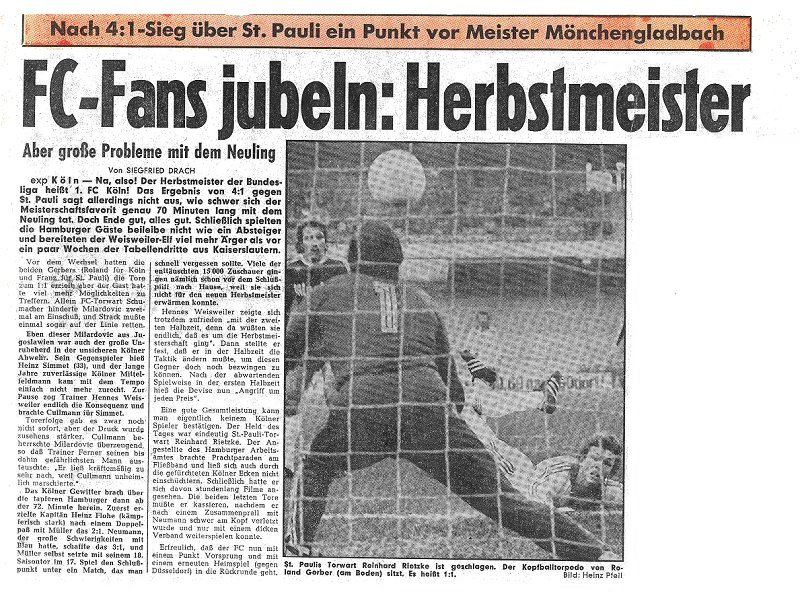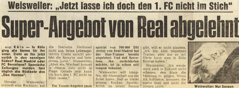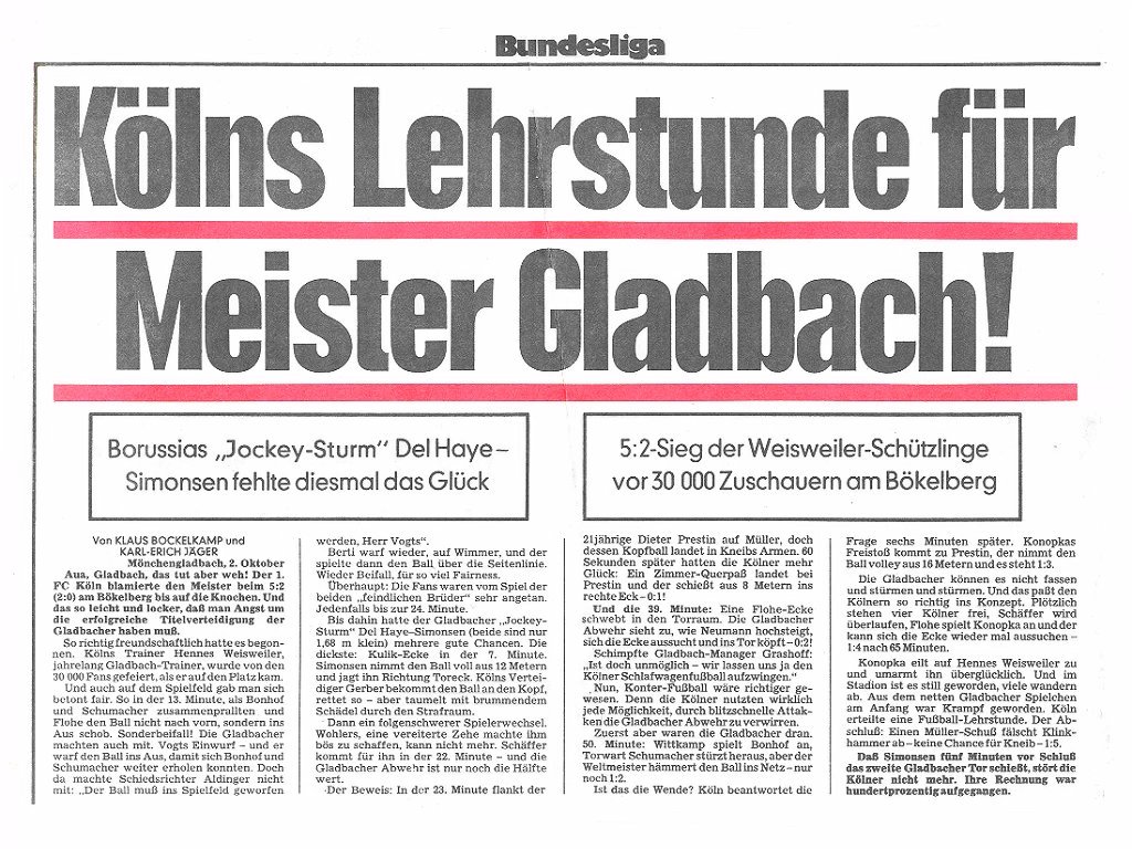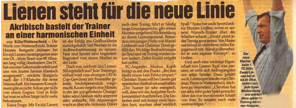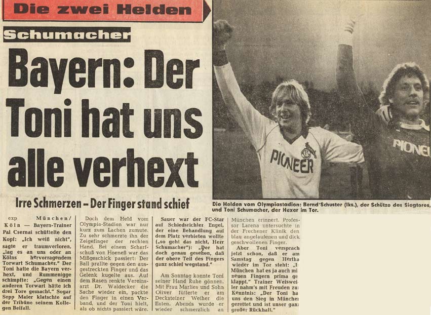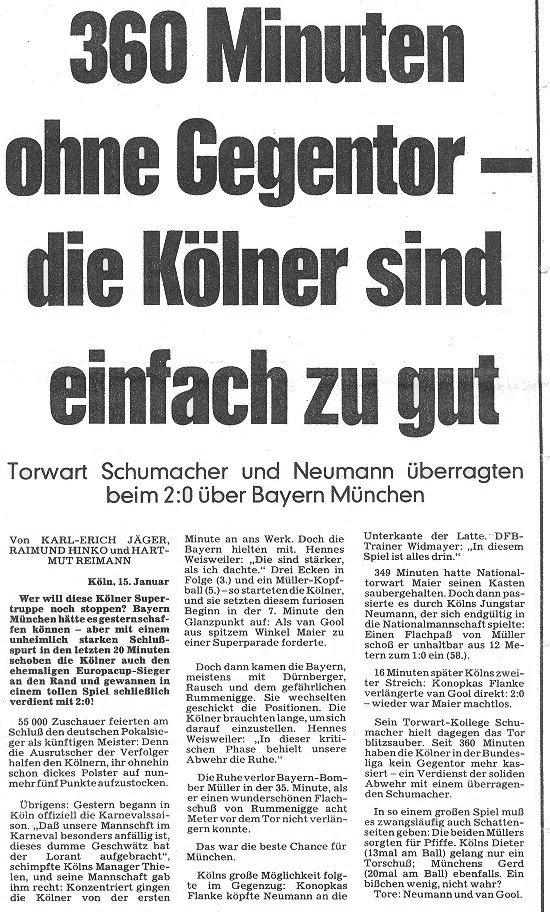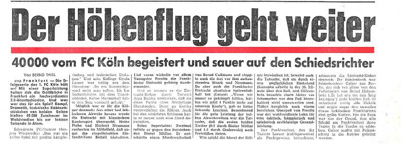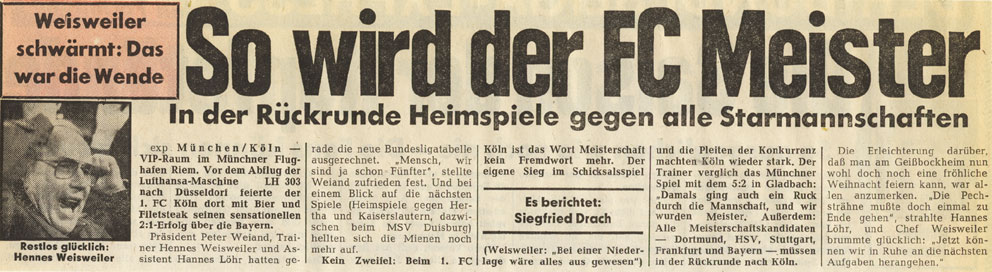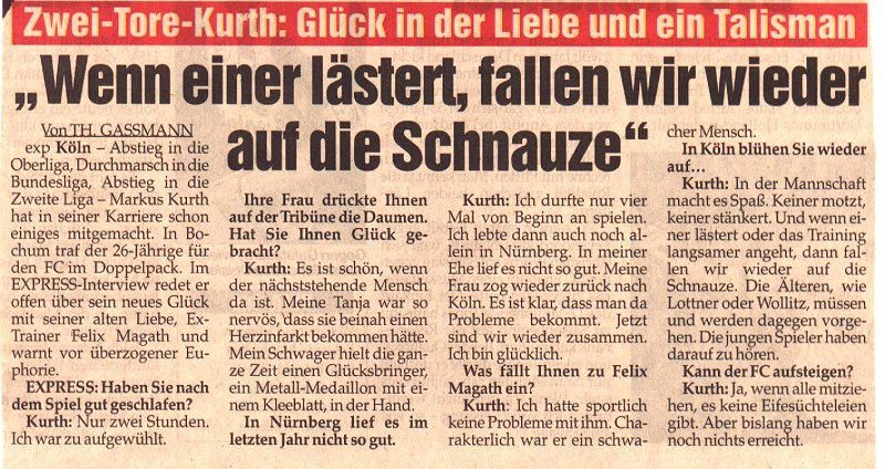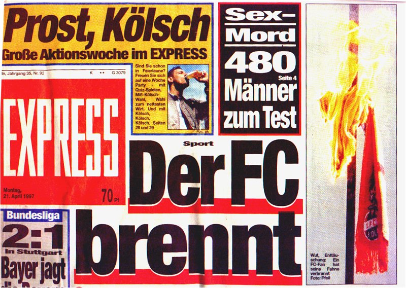 Hier ist unsere Rubrik mit teilweise längst vergessenen Zeitungs-Schlagzeilen rund um unseren FC. Wenn auch Du noch historische Schlagzeilen bzw. aktuelle Zeitungsartikel besitzt, die du gerne hier veröffentlichen möchtest, dann schick sie uns einfach per eMail und wir machen den Rest :-)